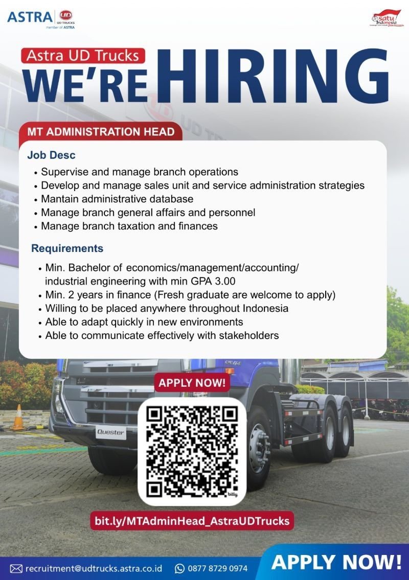 Apabila semua syarat ASTRA UD Trucks sudah anda lengkapi, selanjutnya silahkan kirim lamaran anda via email