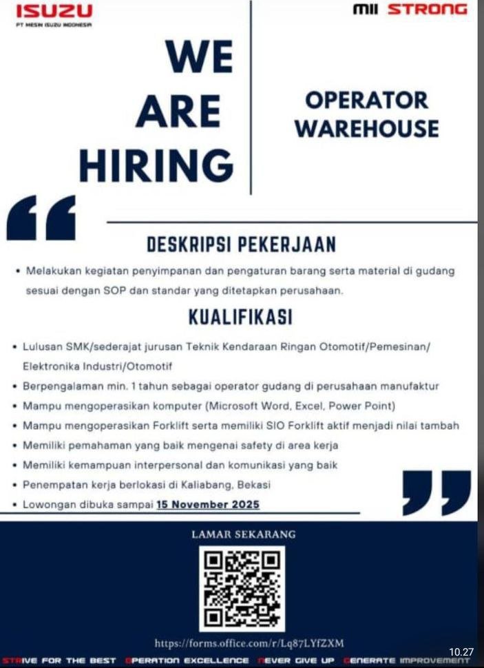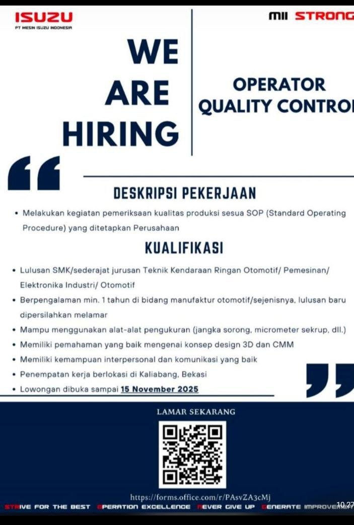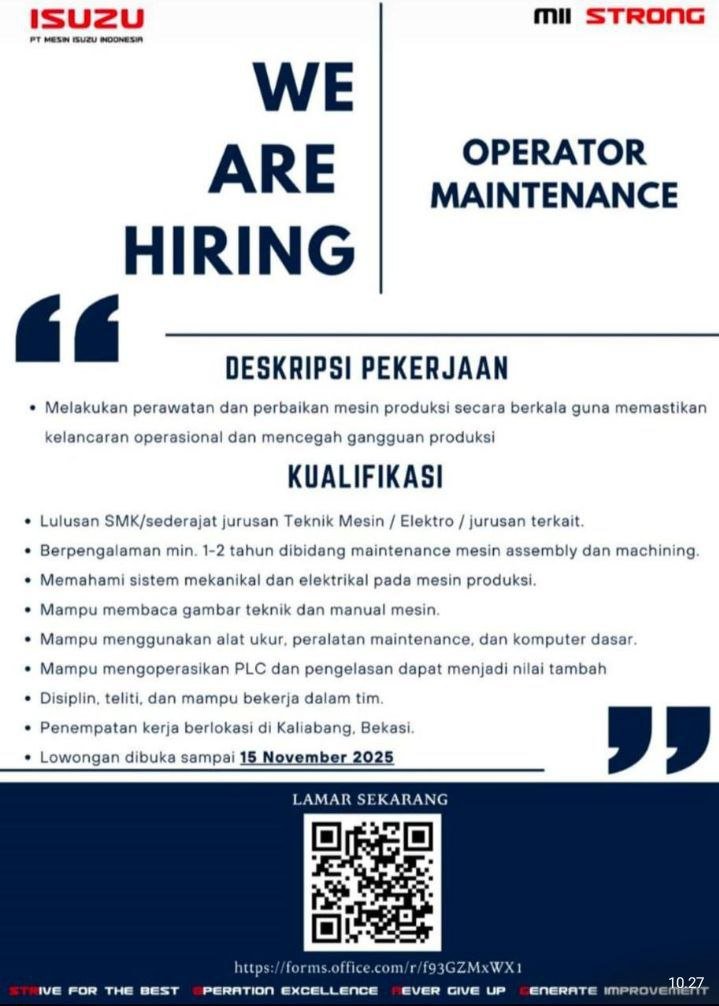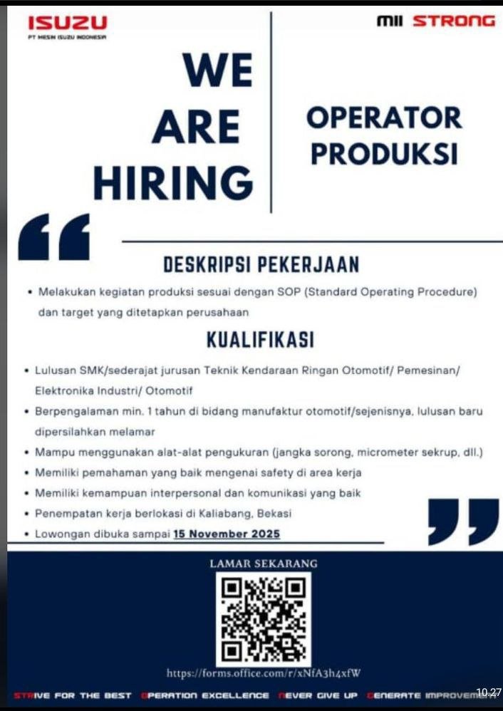 Lowongan Kerja PT Mesin Isuzu Indonesia
